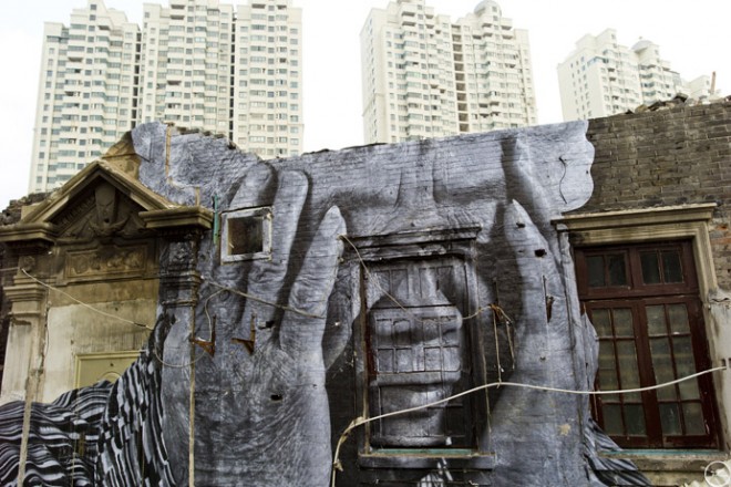 JR (qui la pagina su Wikipedia, qui invece il suo sito) è un artista e fotografo francese, nato nel 1983 e dall’identità sconosciuta. Si descrive come photograffeur, un mix tra un graffitista e un fotografo, ma è in realtà un artista affermato che ha già frequentato alcune tra le più importanti gallerie d’arte del mondo.